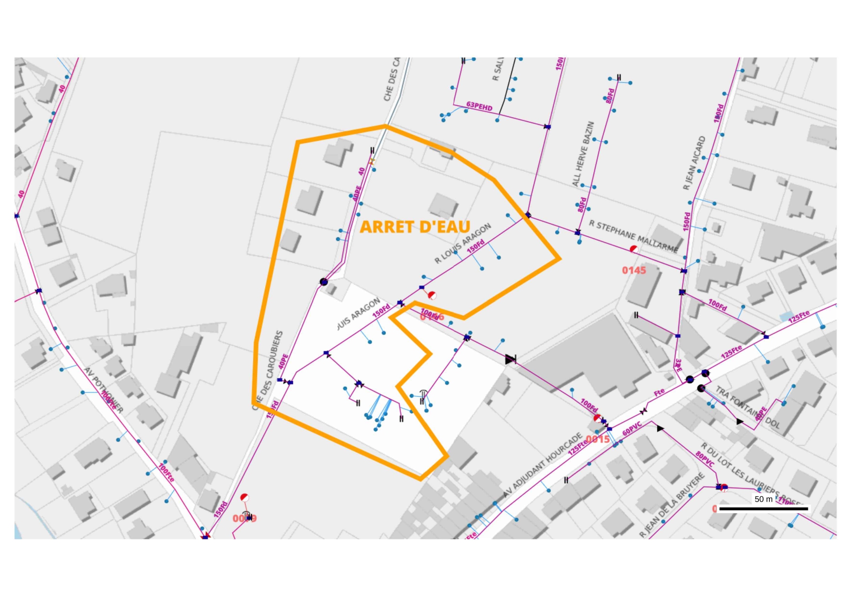 Cette coupure est nécessaire pour permettre le raccordement d’une conduite d’eau potable, dans le cadre du renouvellement du réseau AEP (Alimentation en Eau Potable) sur le chemin des Caroubiers, en lien avec l’opération menée pour l’entreprise URBAVAR.