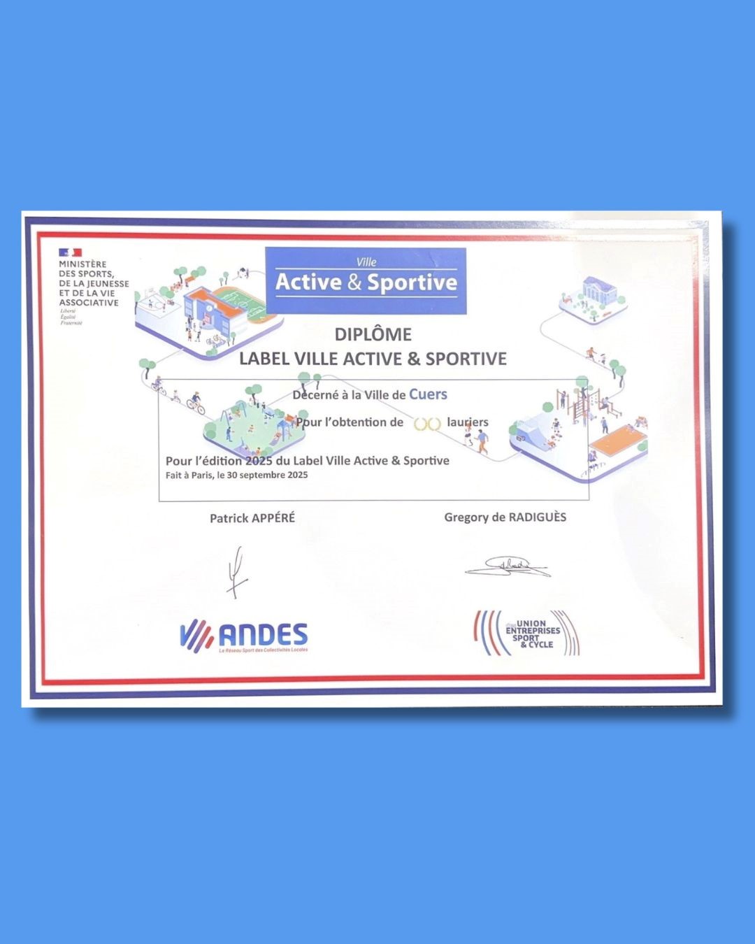 Le label national “Ville Active & Sportive” a attribué à notre commune 2 lauriers pour l’année 2025.