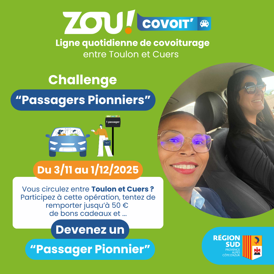 ZOU ! COVOIT’ LANCE LE CHALLENGE PASSAGERS PIONNERS