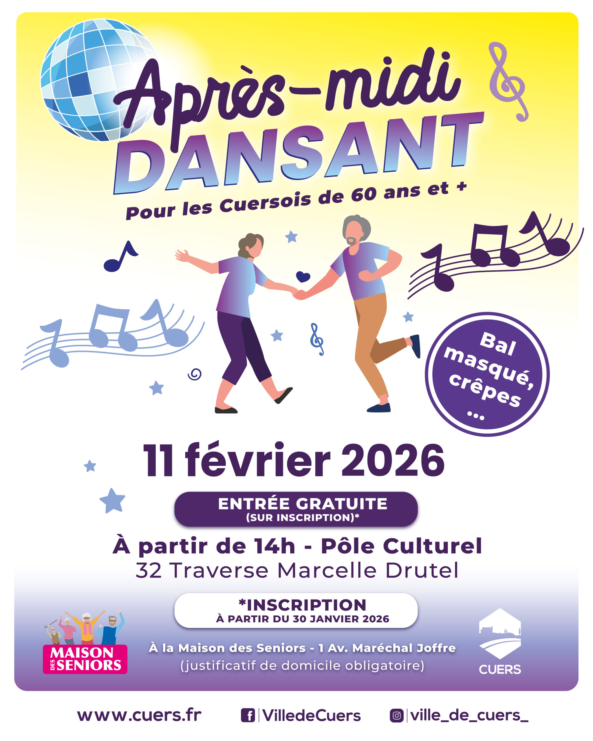 À l’approche de Mardi Gras, la commune de Cuers vous invite à partager un moment convivial, musical et haut en couleur à l’occasion d’un après-midi dansant spécial Mardi Gras, organisé au Pôle culturel de Cuers.