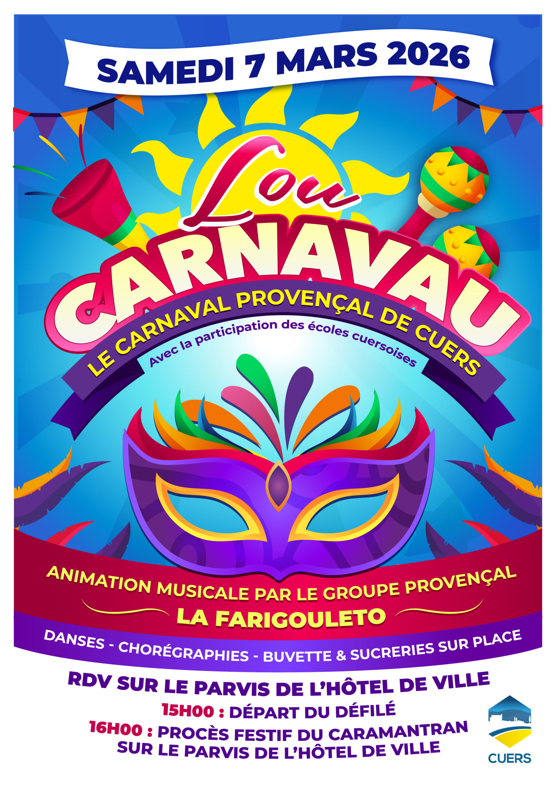 Préparez les déguisements, les confettis et les sourires : Lou Carnavau débarque à Cuers pour un après-midi haut en couleurs, en musique et en traditions provençales