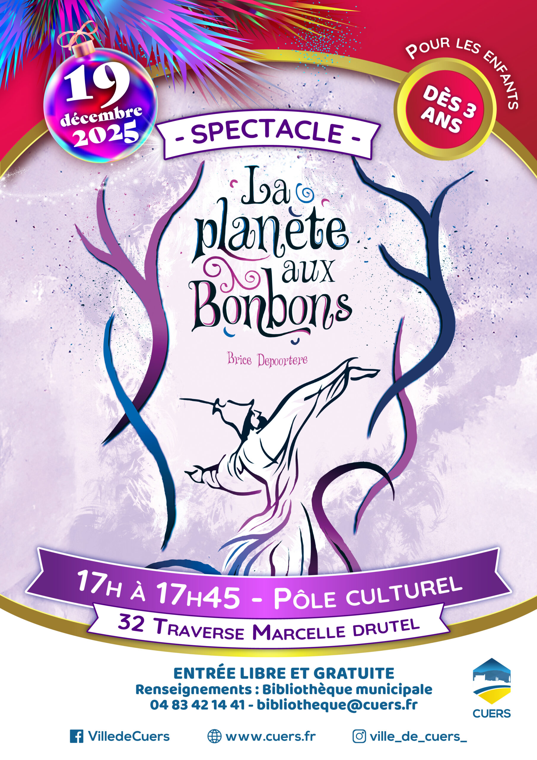 La Ville de Cuers vous invite à un moment magique et poétique avec le spectacle “La planète aux bonbons” de Brice Depoortere, conteur et magicien.