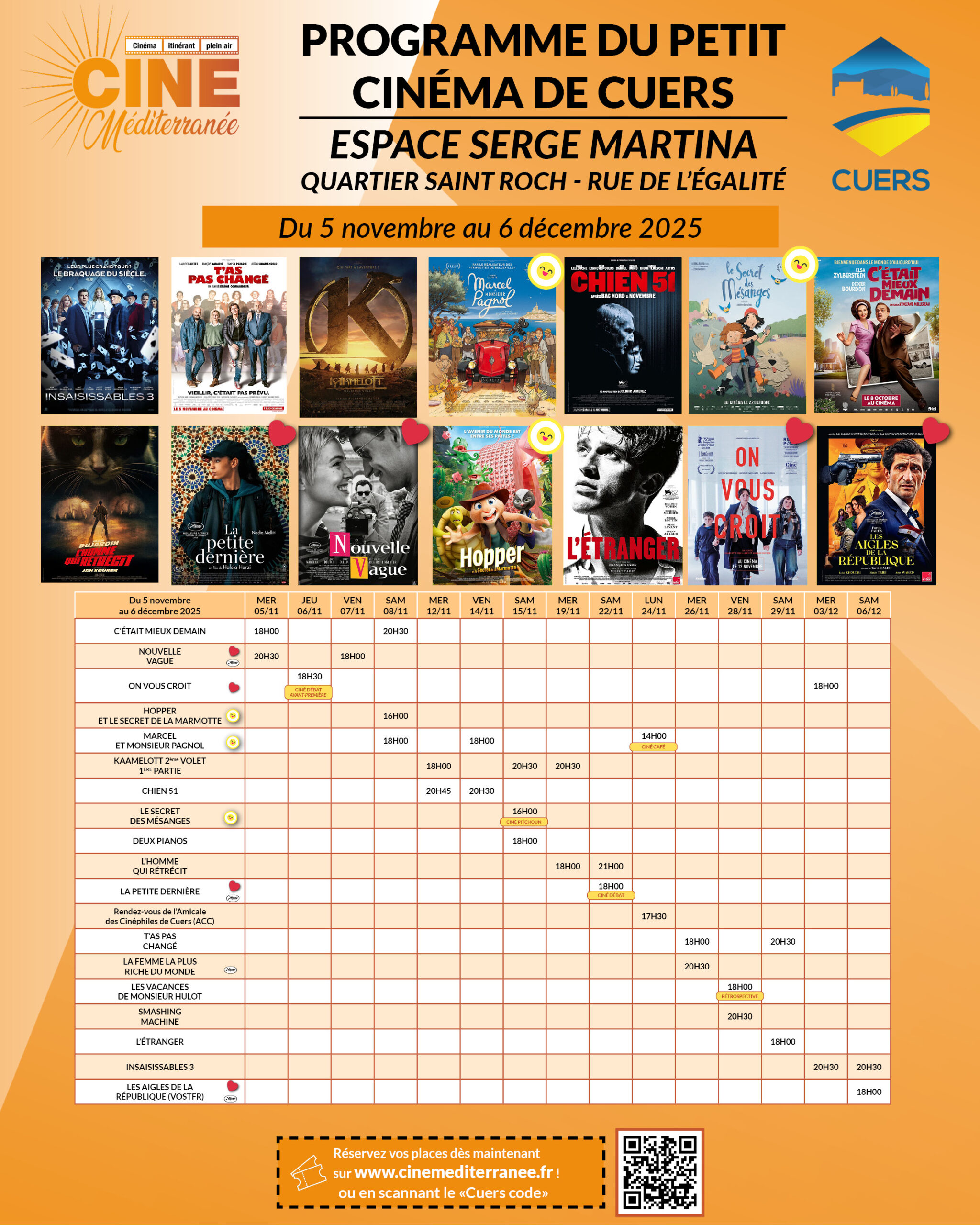 Grille Programmation du cinéma de CUERS Novembre 2025