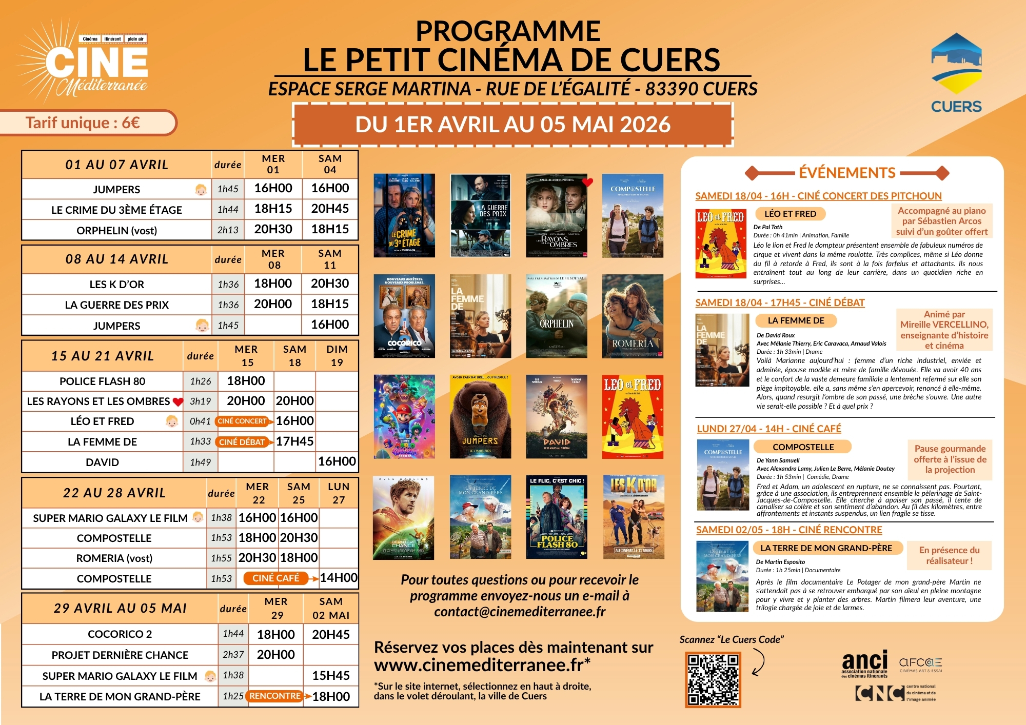 Réservez vos places sur le site internet www.cinemediterranee.fr : tarif unique de 6 euros.